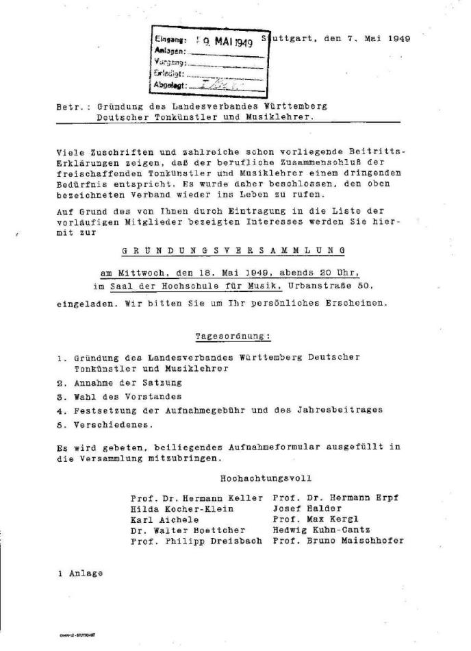 Die nachfolgende Einladung zur Gründung des TKV befand sich auch im Archiv HG in Reutlingen