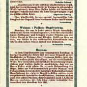 Letzten Donnerstag habe ich mein erstes Konzert in Leipzig (Thomaskirche) mit sehr erfreulichem Erfolg gegeben; ich erlaube mir, Ihnen ein paar Kritikenauszüge, wie sie von den hiesigen Zeitungen gebracht worden sind, zuzustellen.